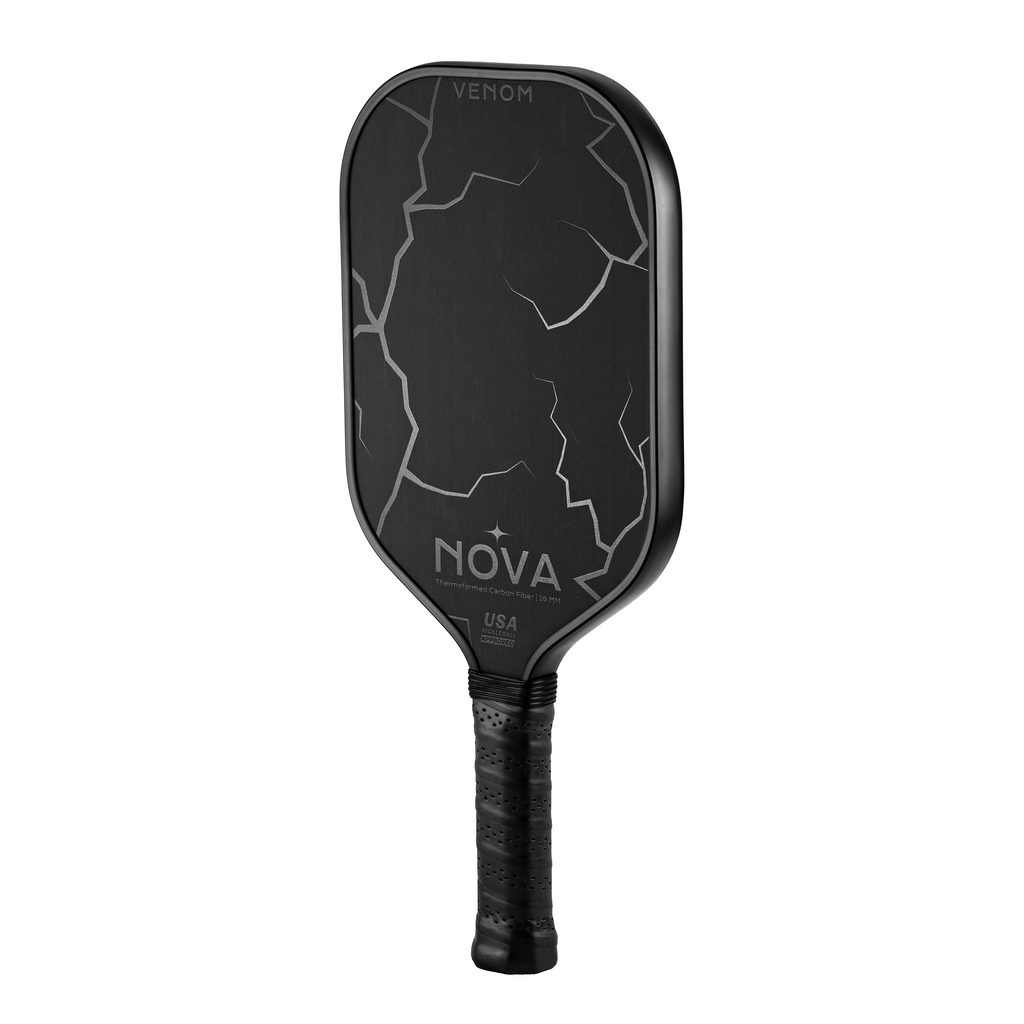Une fois que vous maîtrisez le contrôle et que vous pouvez placer la balle n'importe où sur le terrain avec précision, maximisez votre puissance avec la raquette de pickleball Blaze Pro 13 de Wilson. Conçue pour les joueurs compétitifs qui peuvent frapper la balle profondément dans le terrain ou la laisser tomber juste au-dessus du filet, la raquette allongée présente une face hybride en fibre de carbone brute avec une base en fibre de verre pour vous aider à maximiser la puissance et à générer des effets. Son bord thermoformé enveloppe la fibre de carbone autour du périmètre du cadre, ce qui augmente sa stabilité, élargit le sweet spot et réduit les vibrations.