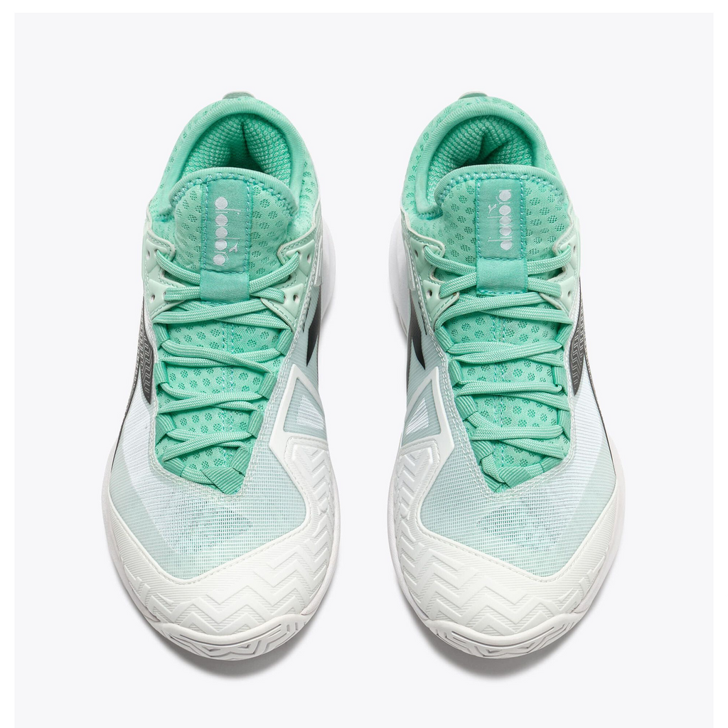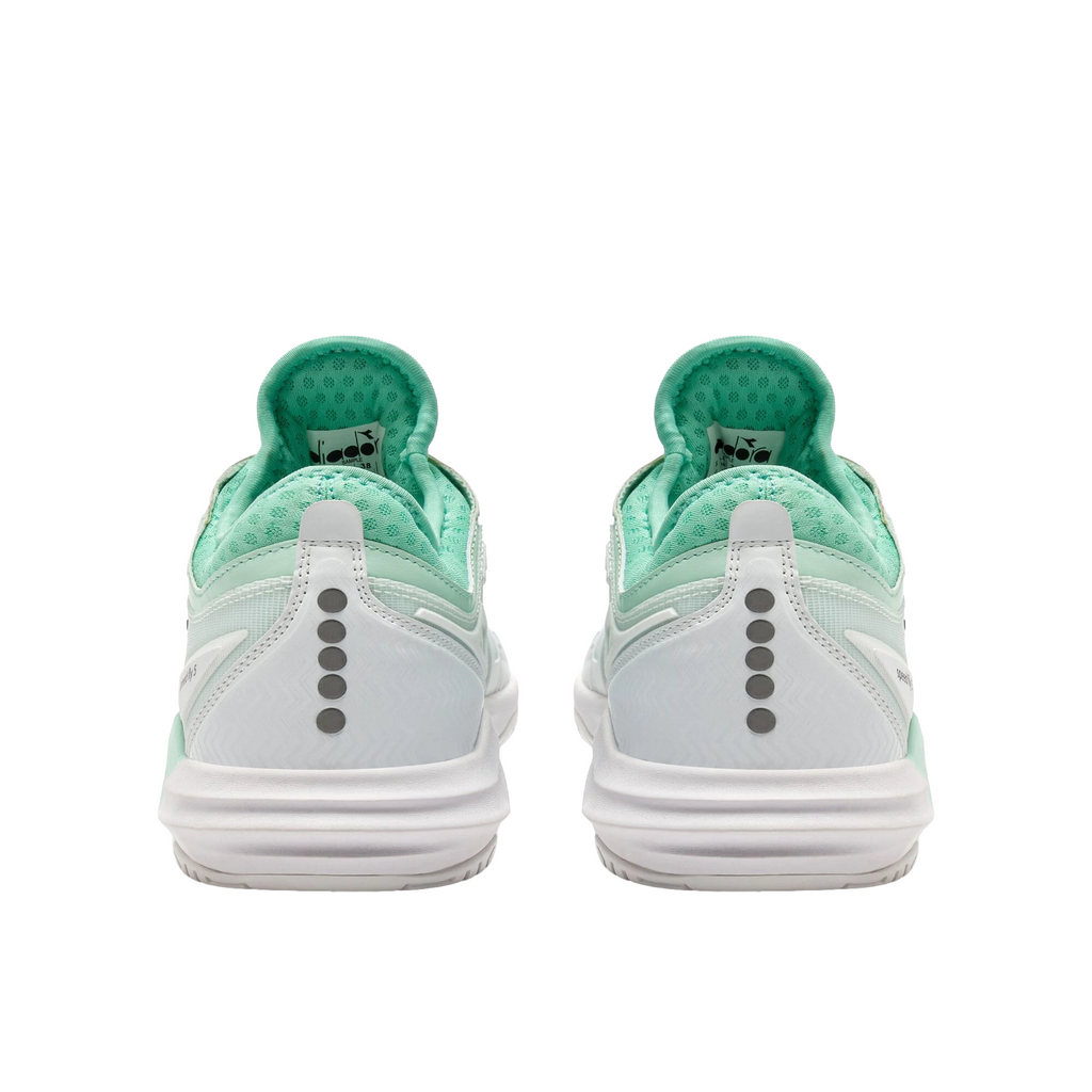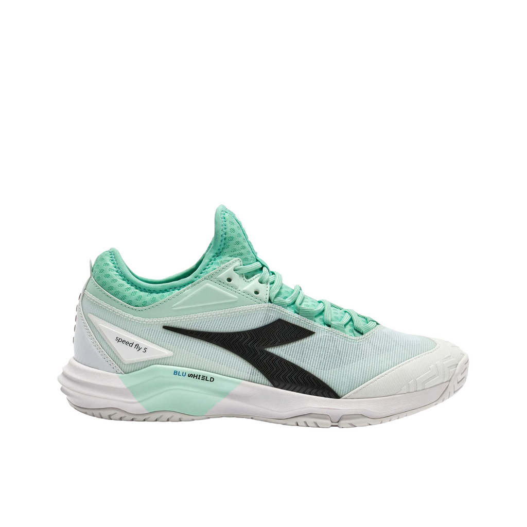 Chosen by Diadora athletes, and loved for its sock-like fit that keeps your foot secure through the third set. The Speed Blushield Fly 5 W AG is built for the fastest players, ready to perform on both hard and clay courts.The upper combines SuprellTech, air mesh, and d-skin for exceptional stability, breathability, and comfort. The Light EVA midsole with medial support now integrates Diadora Blushield technology for enhanced balance and foot support, while the Duratech 5000 rubber outsole ensures outstanding traction and durability on any surface.